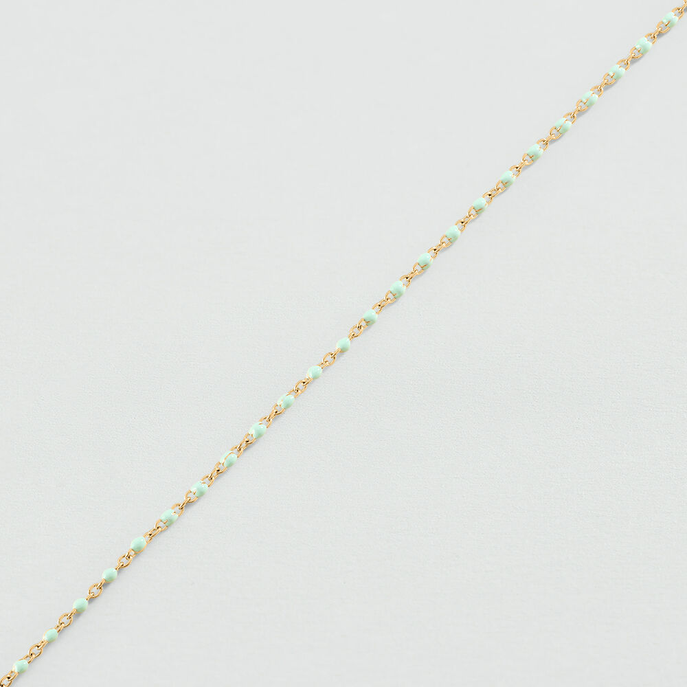 Gold-plated stainless steel bracelet with small colored enamel beads. It is available in black, green, white, coral, blue, burgundy, turquoise or silver/gold color. This piece of jewelry measures 150 mm with an additional X 30 mm extension