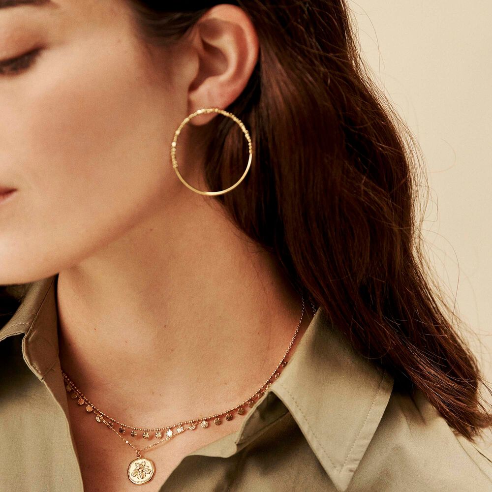 Orbital earrings, in fine gold plated brass, big ring with metal beads section.
