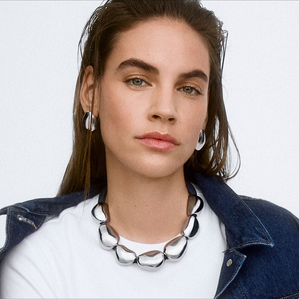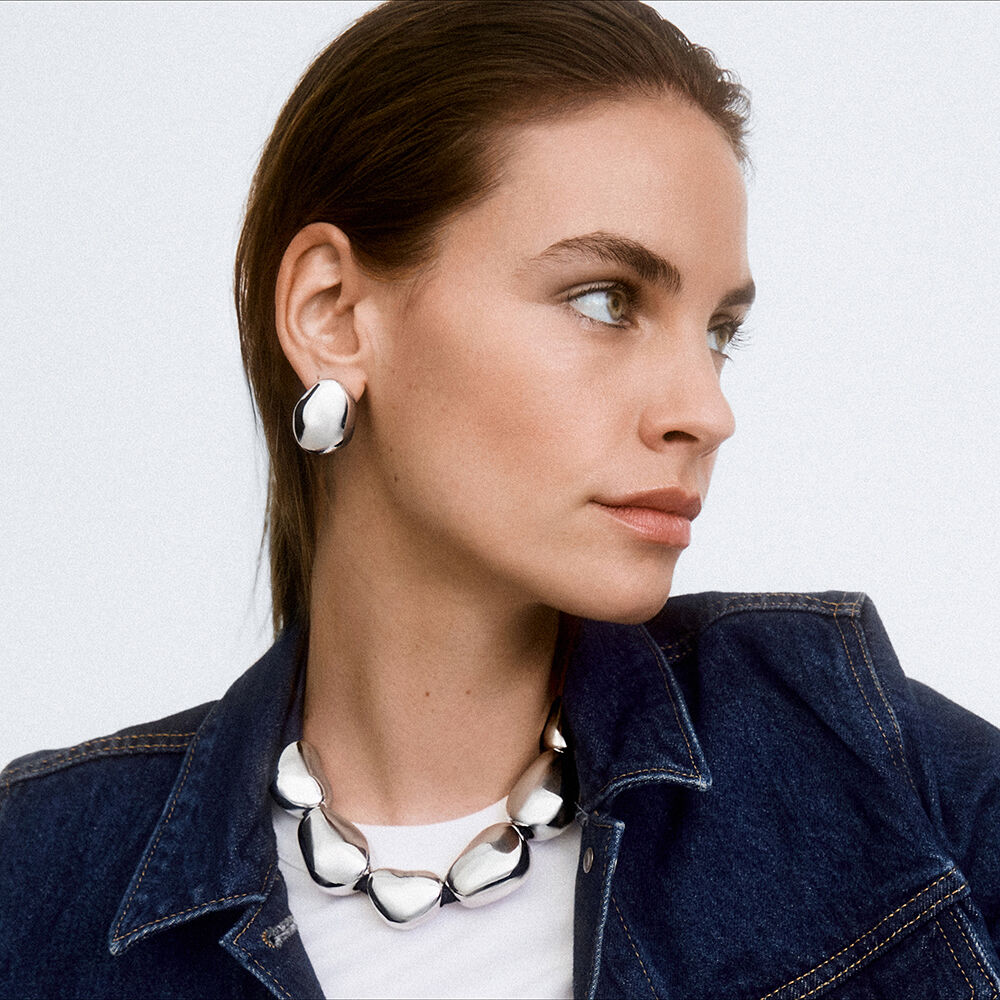 Pebble earrings from our ODYSSÉE collection, designed in Paris, made from rhodium-plated silver-plated brass.