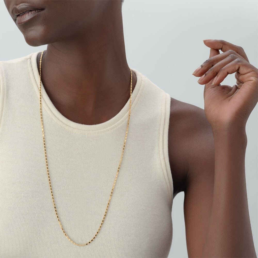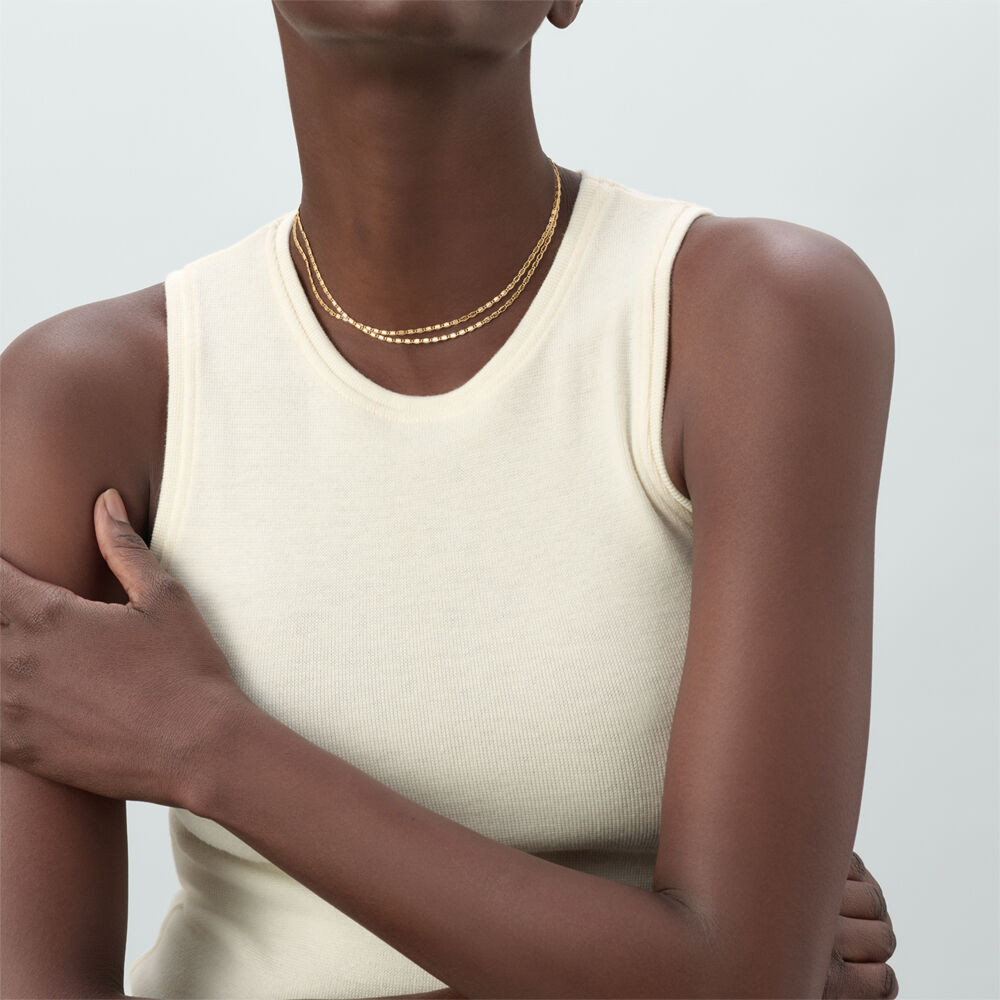 Double Y necklace from our JUSSIEU collection, designed in Paris, made from brass gilded with 750/1000th - 18 carat gold. This mirror chain offers a chic, understated look.