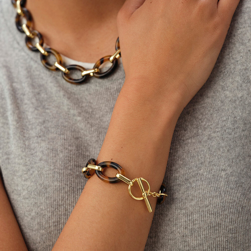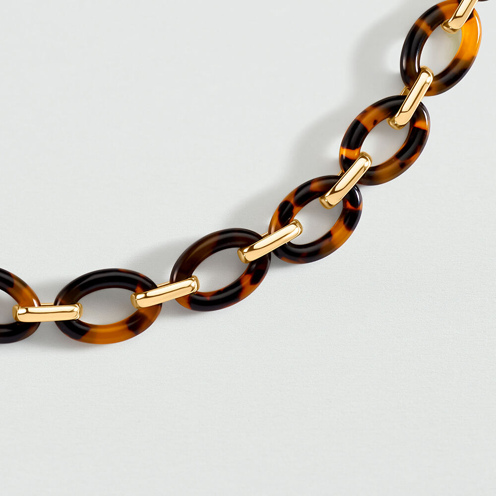 This chain necklace from our ARIA collection, designed in Paris, is made from 750/1000th - 18-carat gold-plated brass and resin. Its chain links and tortoiseshell color give it a modern and elegant look.