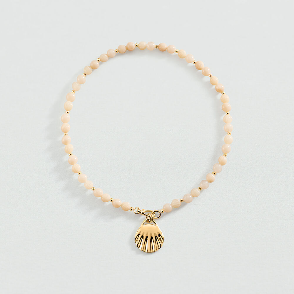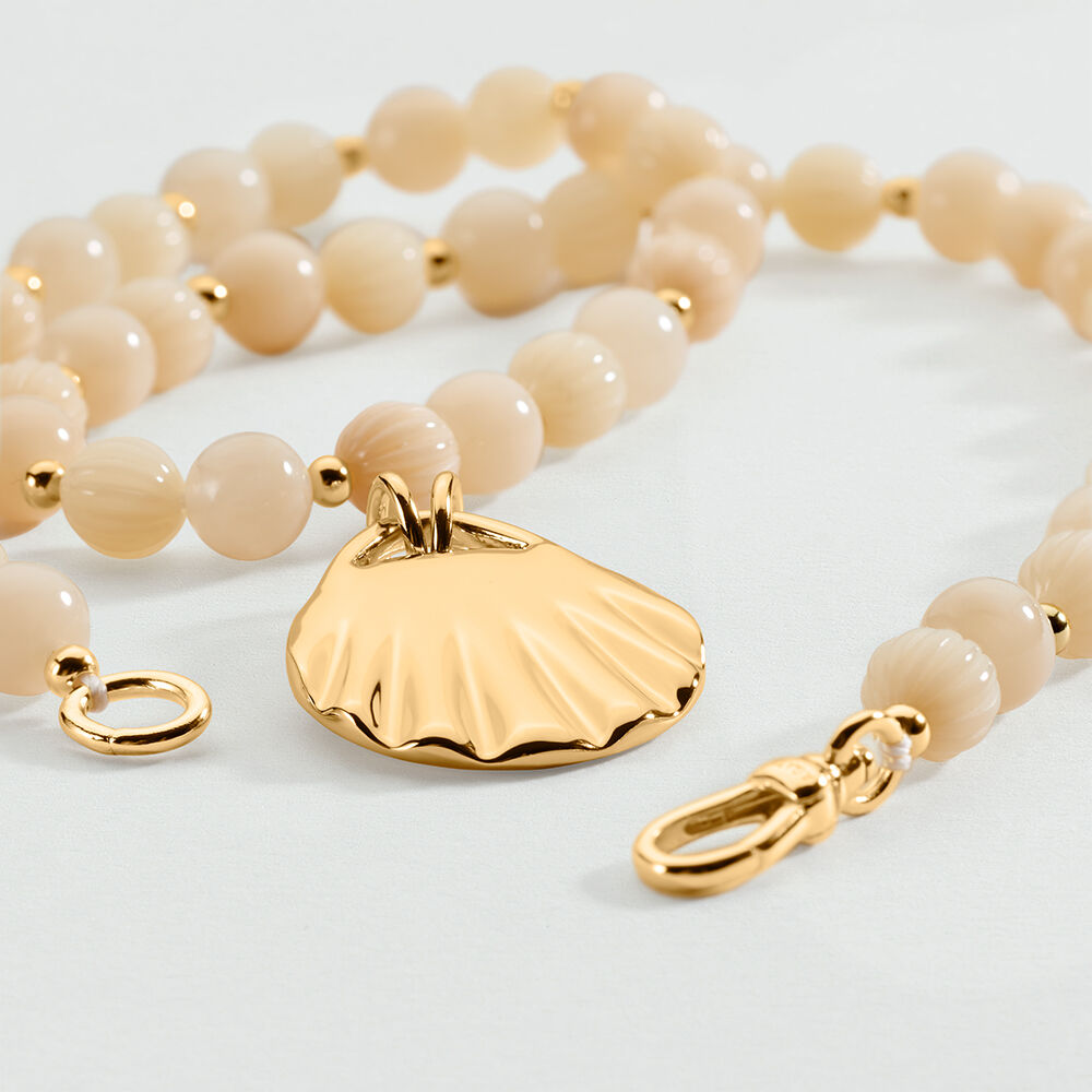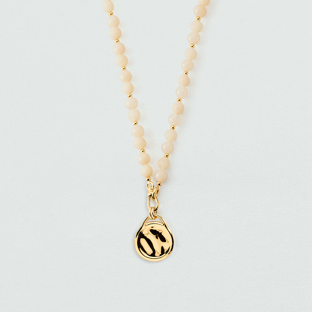 Necklace from our MADELEINE collection, designed in Paris, made from 750/1000th - 18-carat gold-plated brass with resin pearls and a pendant that is textured on one side and striated on the other. It is available in ivory or brown. This timeless collection plays with the colors of the season's hottest trends. The marbled appearance means that there may be slight variations in color from one model to another.