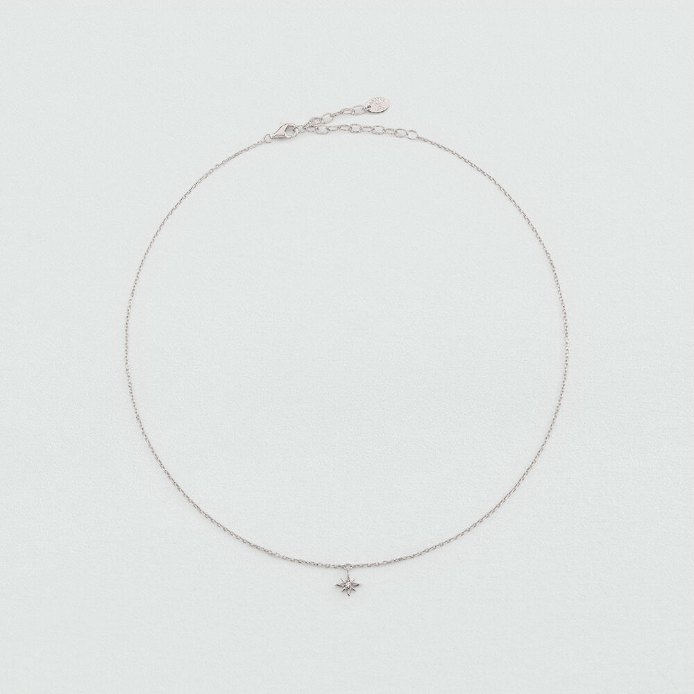 Necklace in sterling silver with a star pendant set with a cz. . This piece of jewelry is 375mm long and comes with a 50mm extender
