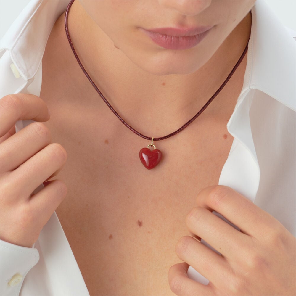 Necklace from our SACRE COEUR collection, designed in Paris, featuring a waxed cotton cord and Agatha's iconic red heart in resin. The marbled appearance implies possible color variations from one model to another. This piece of jewelry measures 420 mm with an additional X 50 mm extension