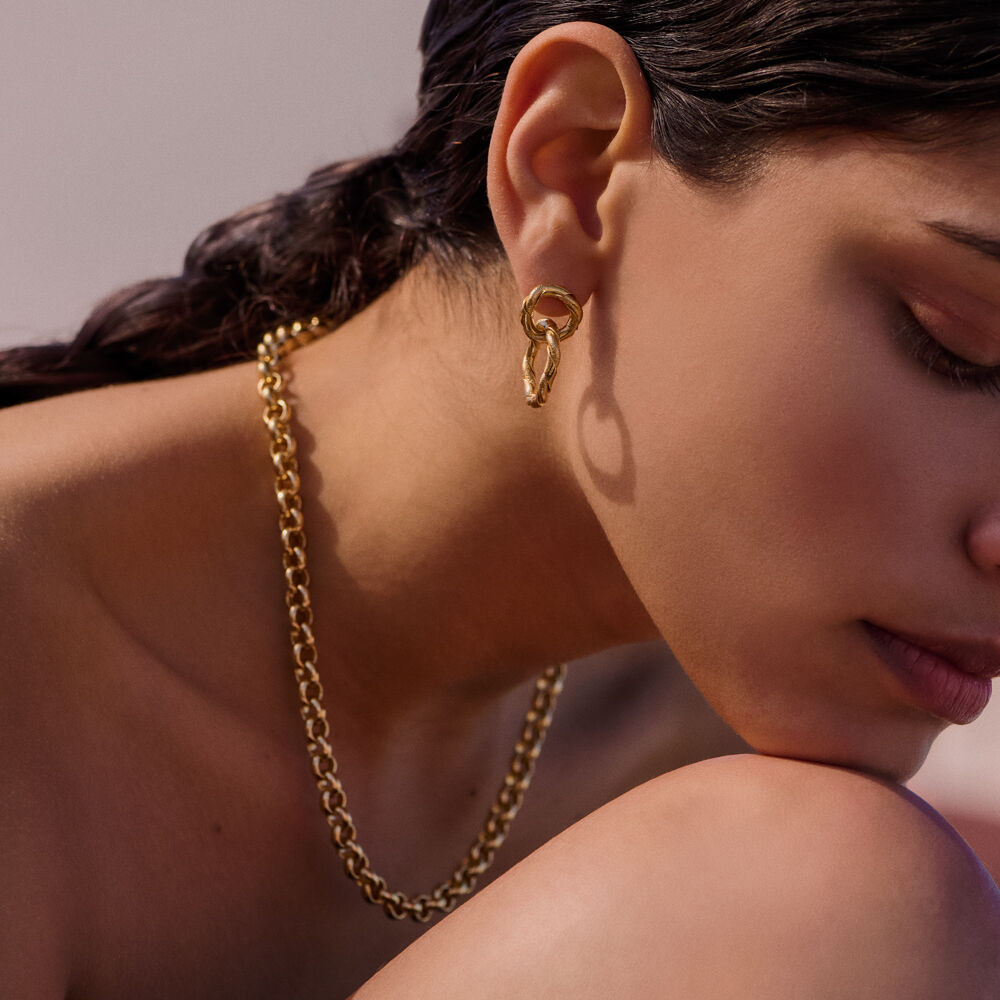 Necklace in gold 750/1000 plated brass made of a large jaseron chain. .