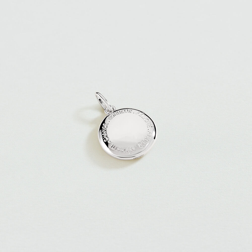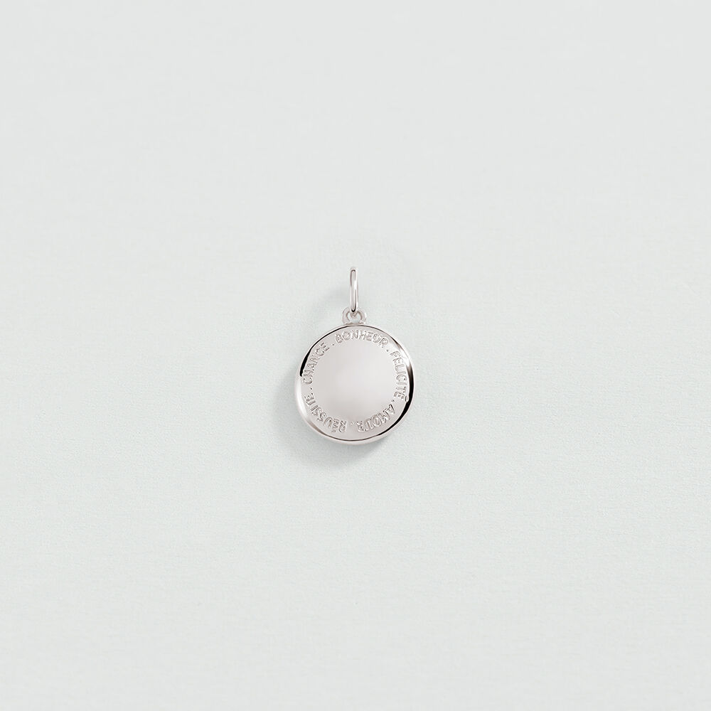 Rhodium-plated brass medallion with clover and “porte bonheur” inscription – Personalize your jewelry and change it as you wish by adding one or more charm pendants from our Talismans collection.