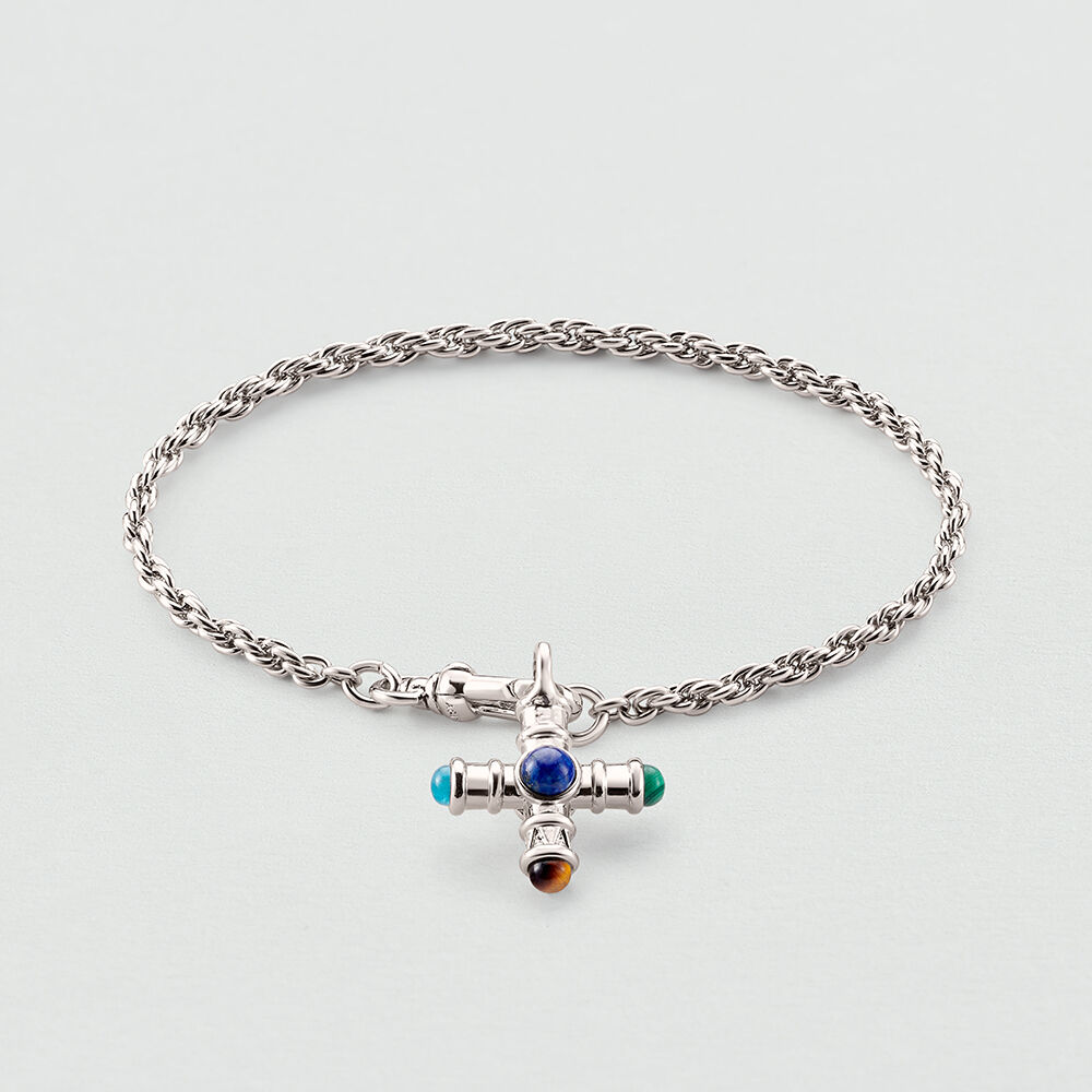 Rhodium-plated brass cross charm pendant set with natural stones – Create your own unique piece by combining it with other charm pendants and the chain of your choice.