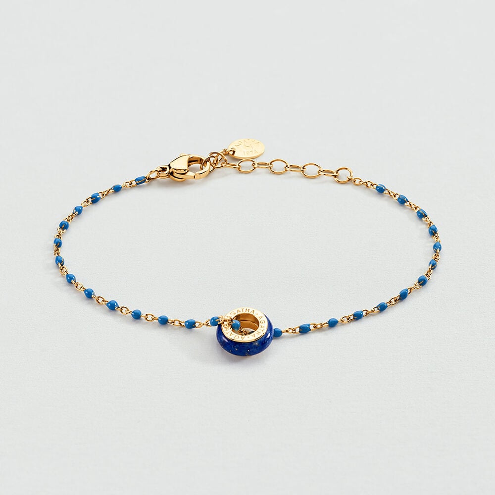 “Donut” pendant in natural stone with gold-plated brass insert (750/1000). Create your unique and personalized jewelry by combining it with other charm pendants and the chain of your choice.