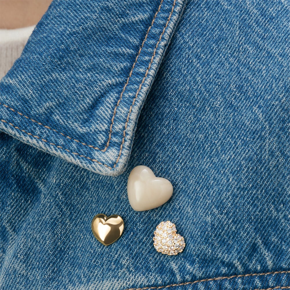 Trio of pins from our SACRE COEUR collection, designed in Paris, made from 750/1000th - 18-carat gold-plated brass with a heart adorned with zirconium oxides. The marbled appearance implies possible color variations from one model to another. This piece of jewelry measures 170 mm with an additional X 30 mm extension