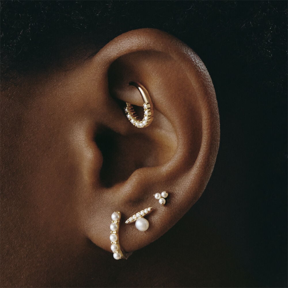 Single stud earring from our MIX & MATCH concept, crafted from 925 sterling silver plated with 18k gold (750/1000) and adorned with glass beads. Sold individually, perfect for mixing and matching.