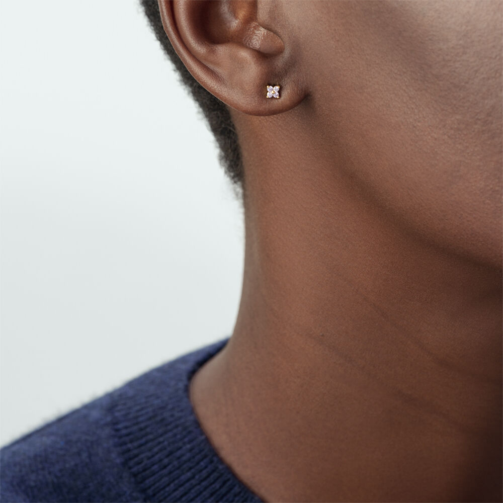 This flower stud earring from our MIX & MATCH collection is made from 925 silver plated with 750/1000th - 18 carat gold and adorned with zirconium oxides.Sold individually, so you can mix and match them.