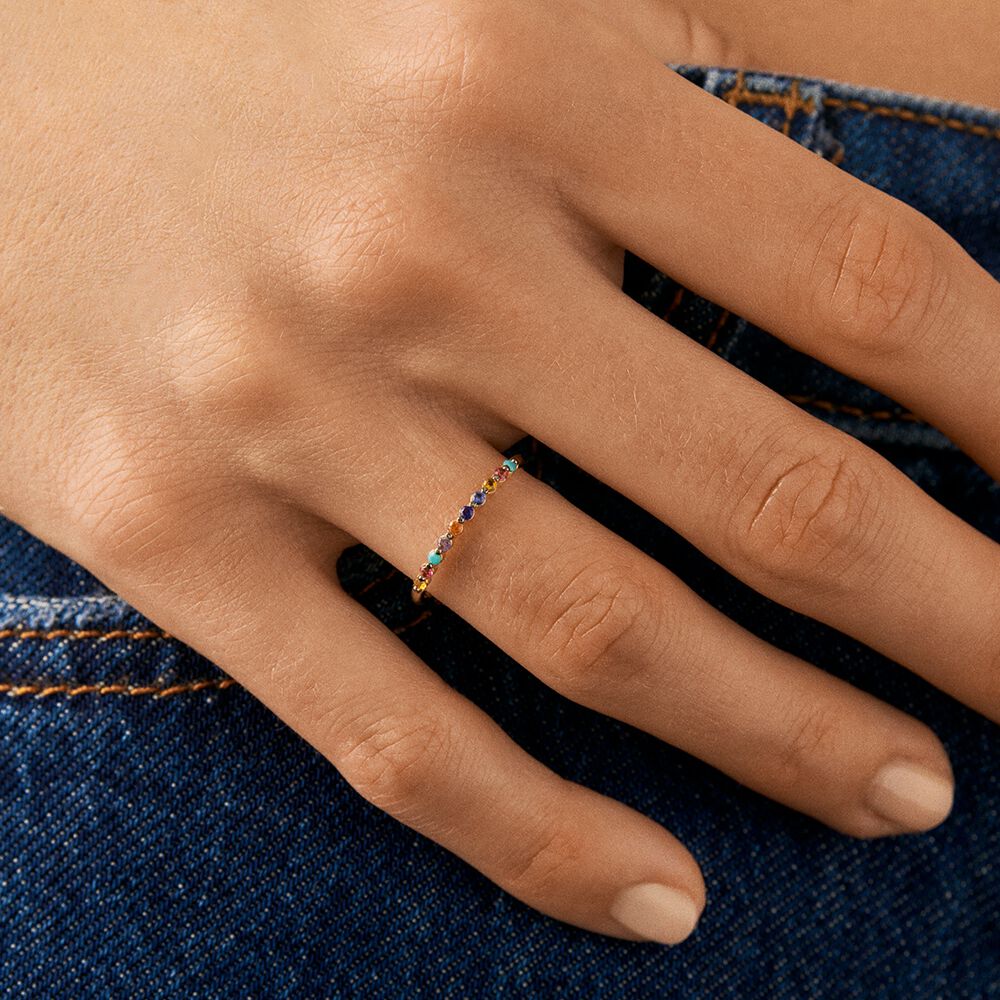 Ring, in sterling silver with 3 microns gold plating, with a serie of bezel set cubic zirconia.