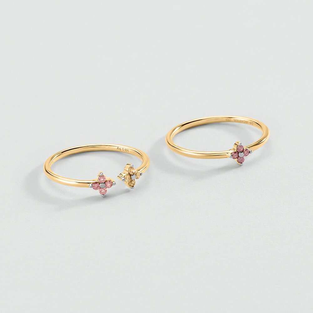 Duo of thin rings in 925/1000 silver plated with 750/1000 gold composed of flowers paved with cubic zirconia..
