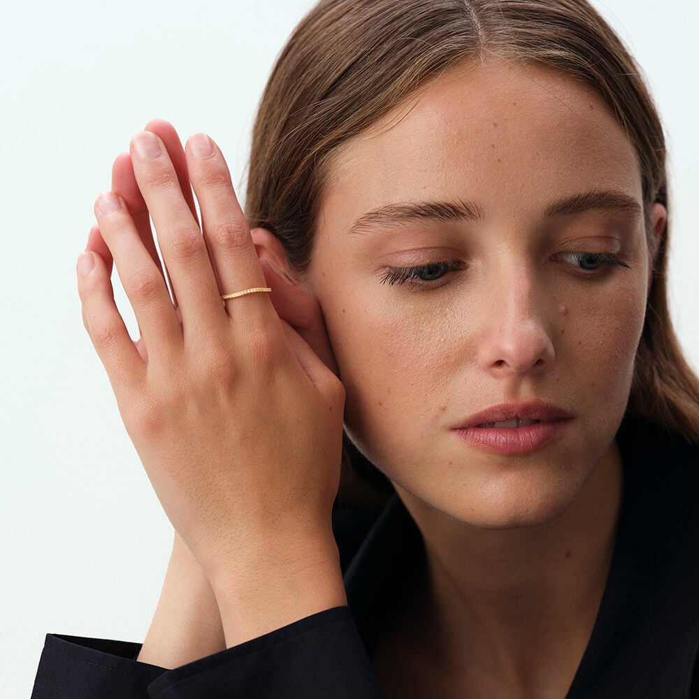 This ring from our DAUPHINE collection, designed in Paris, is crafted from gold-plated 925 sterling silver and adorned with zirconium oxides.Its design, punctuated by organic variations, infuses it with natural movement and harmonious fluidity.