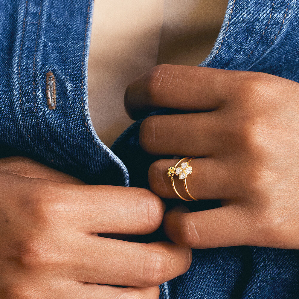 Ring in 750/1000 gold plated sterling silver with a clover shaped top. .