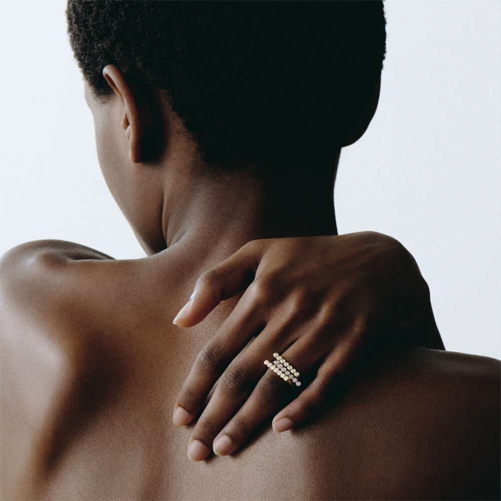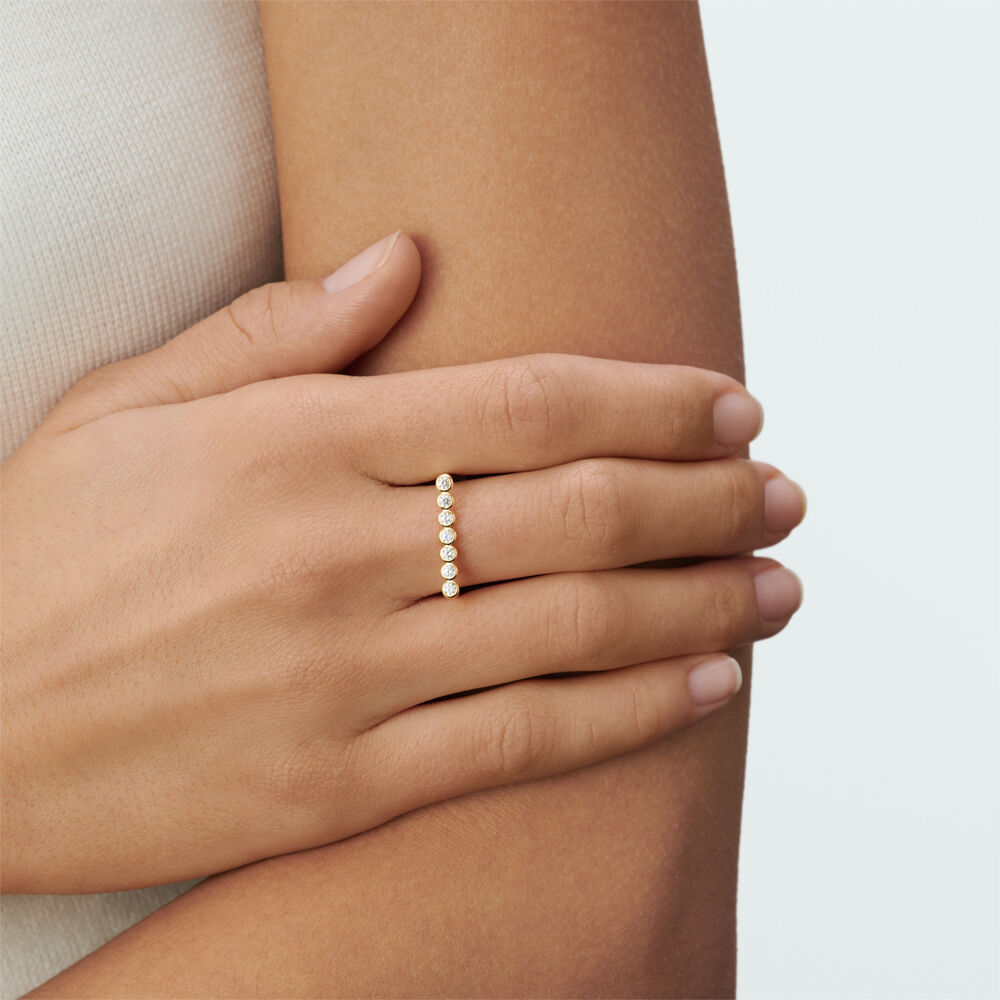 Ring from our ODEON collection, designed in Paris, crafted in 925 silver plated with 750/1000th - 18-carat gold and adorned with zirconium oxides in bezel settings. This collection with its refined design is inspired by classic jewelry codes.