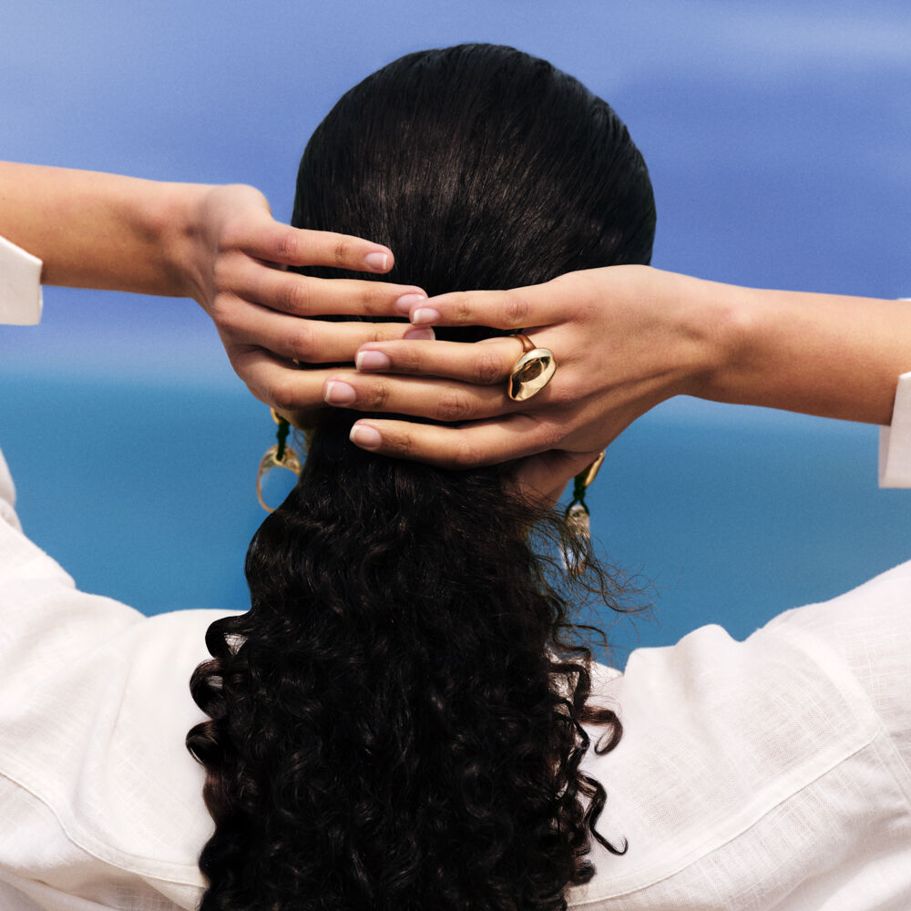 Large organic ring shaped like a stone.With its irregular curves and sculptural volume, this bold piece asserts a distinctly modern style. Perfect to bring character and modernity to your outfits.