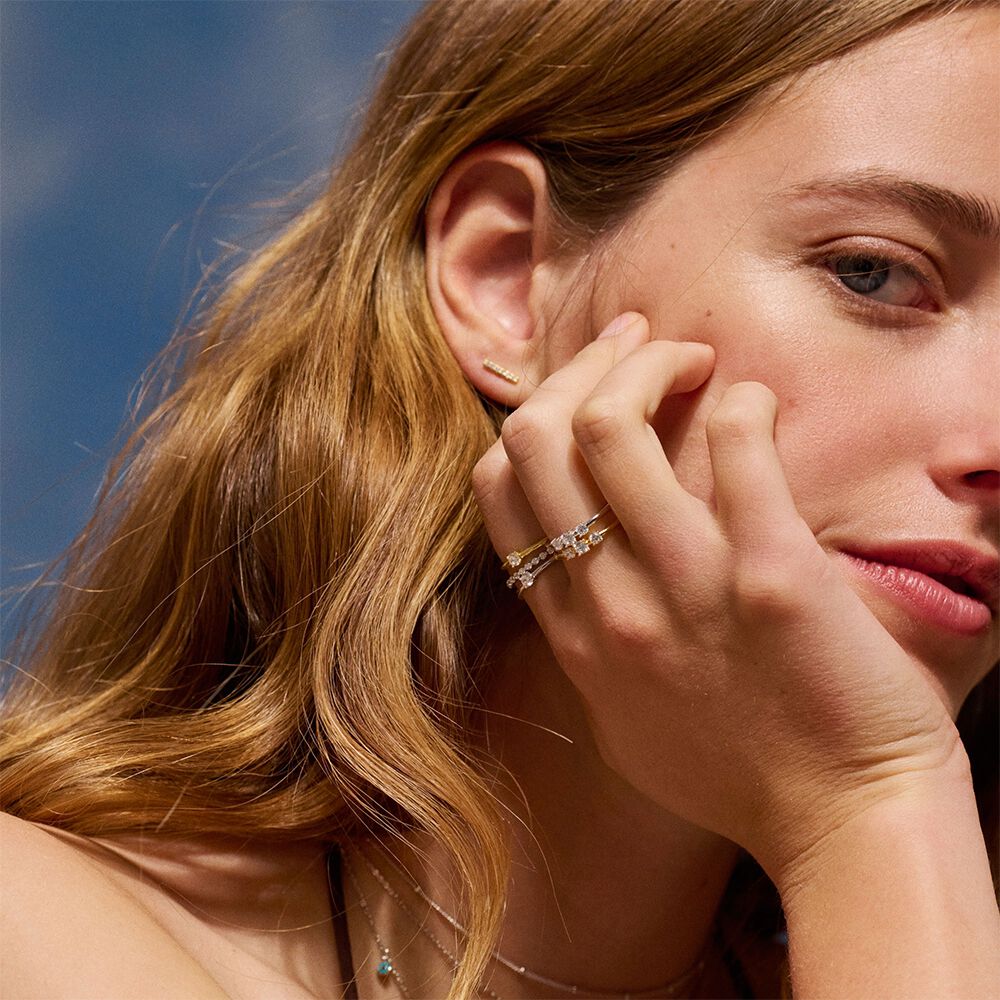 Ring in sterling silver plating with 750/1000 gold setted with 3 Cz. .